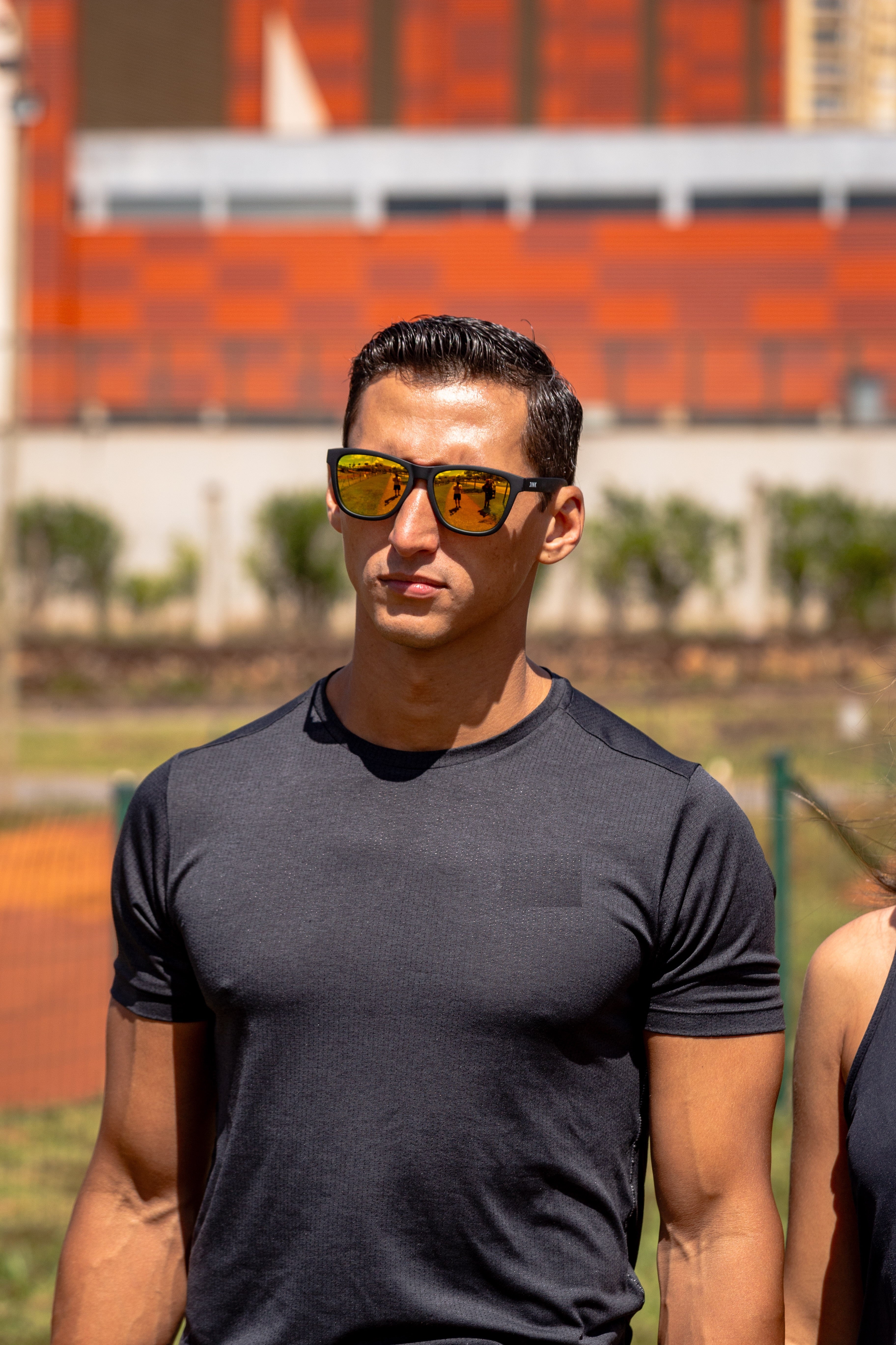 Estilo Refinado: As lentes douradas espelhadas destacam sua personalidade e refletem o brilho das suas conquistas em qualquer ocasião.